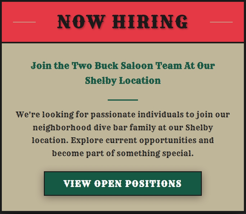 Whether you’re new in town or a local looking for your regular spot, we’re ready to welcome you. At Two Buck Saloon, the drinks are cold, the music’s live, and the fun never misses.